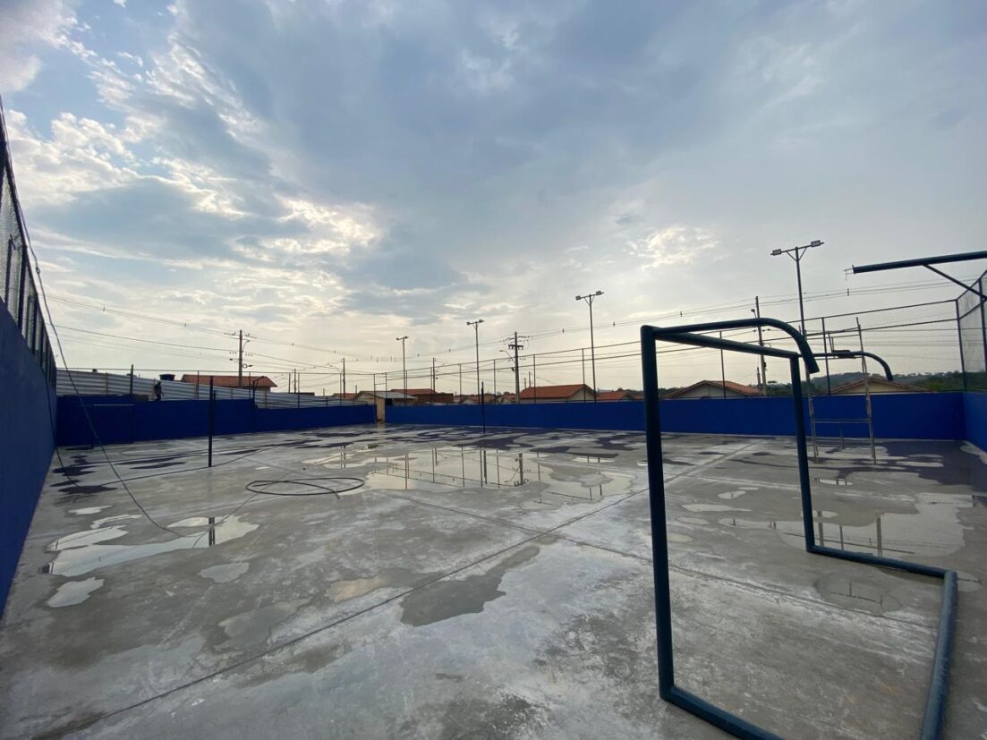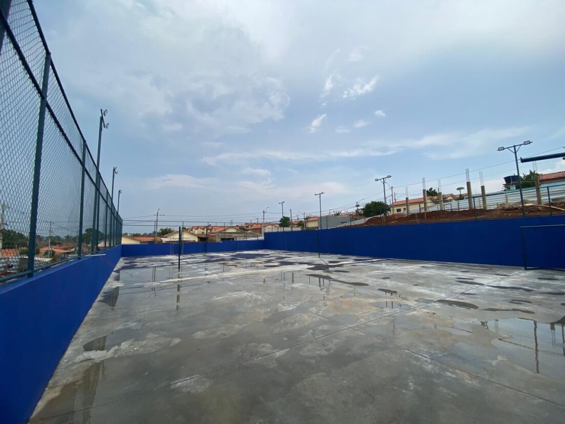 Depois de pronta, a quadra contará com traves de futebol, tabelas de basquete e suporte para rede de vôlei.