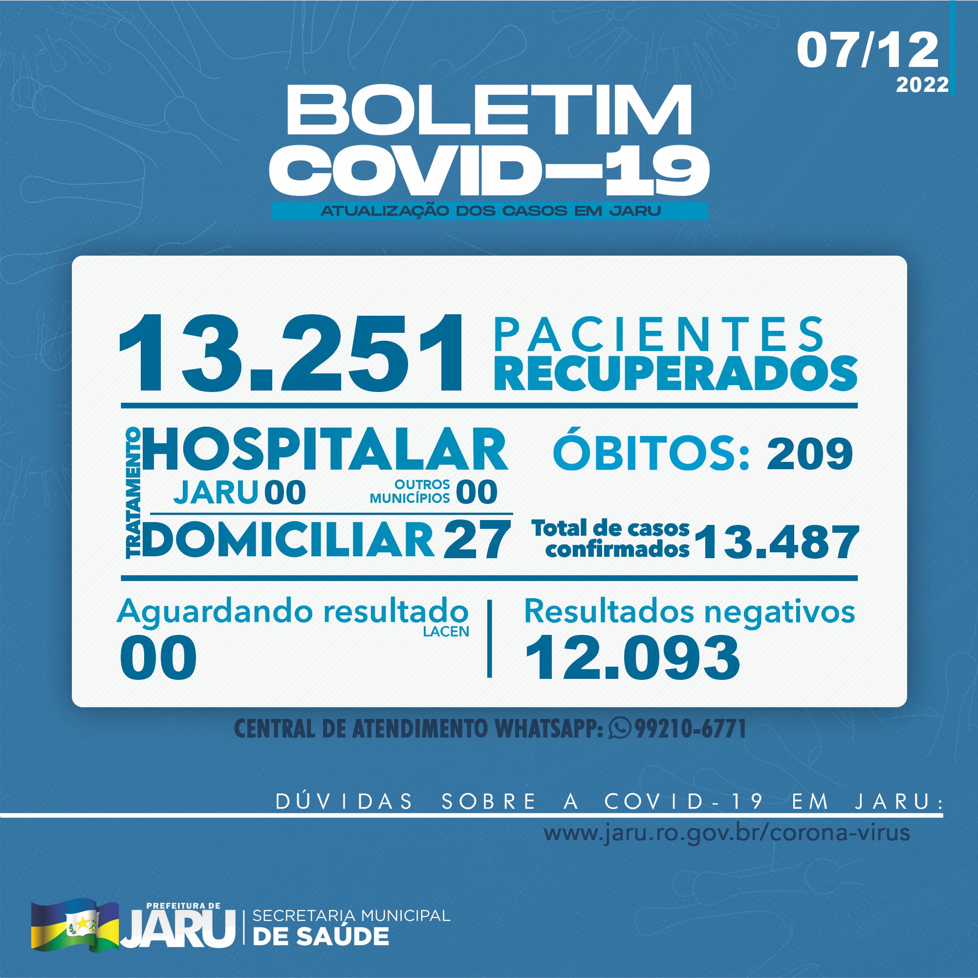 Boletim Coronavírus, dia 07 de dezembro de 2022