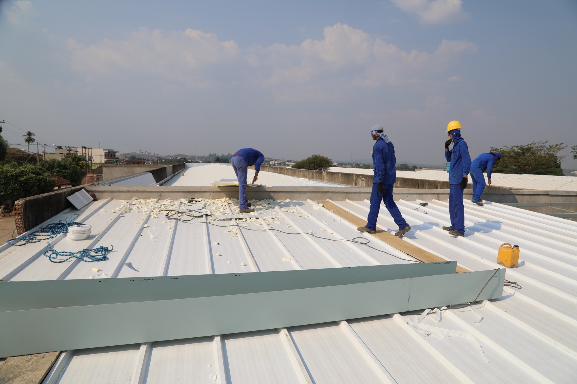 E nesta terça-feira (5), outra equipe trabalha no telhado da estrutura metálica – construída exclusivamente para receber as ambulâncias com os pacientes. Lembrando que, em todo o hospital foi usado um telhado moderno, ecologicamente correto, resistente e com excelente isolamento térmico – o que garantirá mais economia de energia.