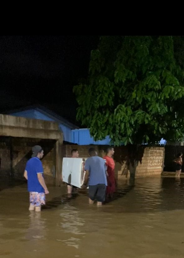 Equipes de plantão da Prefeitura de Jaru prestam apoio para retirada de famílias atingidas pelos alagamentos no entorno do Rio Jaru