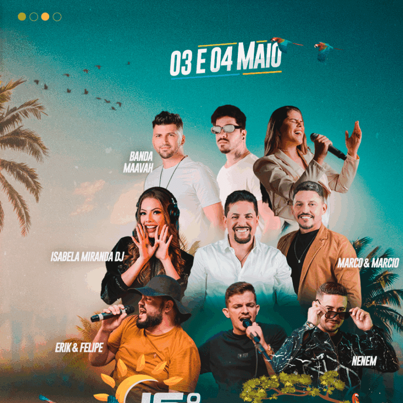 Além de shows musicais, com Erik e Felipe, Isabela Miranda DJ e Banda Maavah no sábado (03) e no domingo Marco e Márcio e Neném Pelo Art, animam a galera.