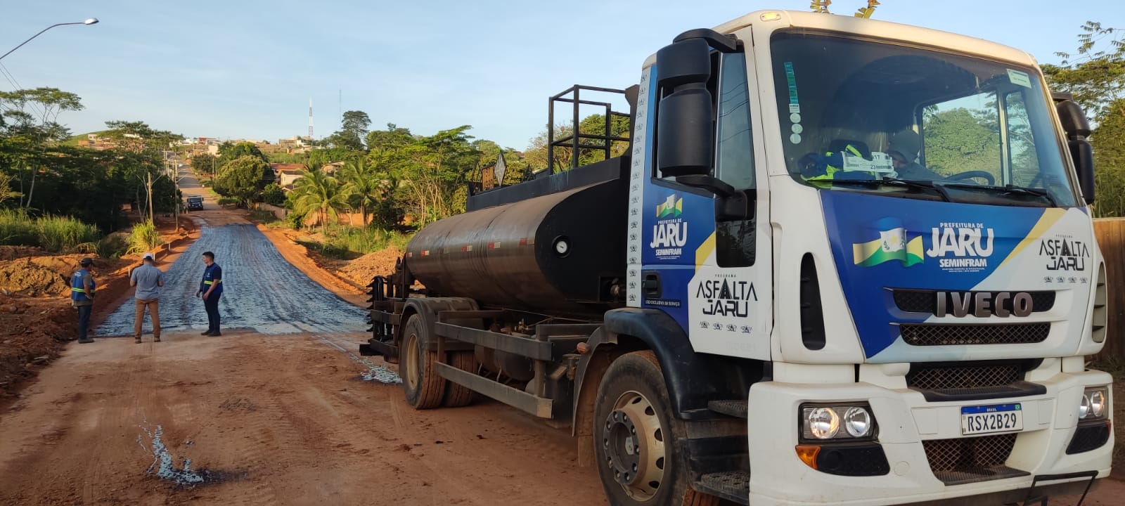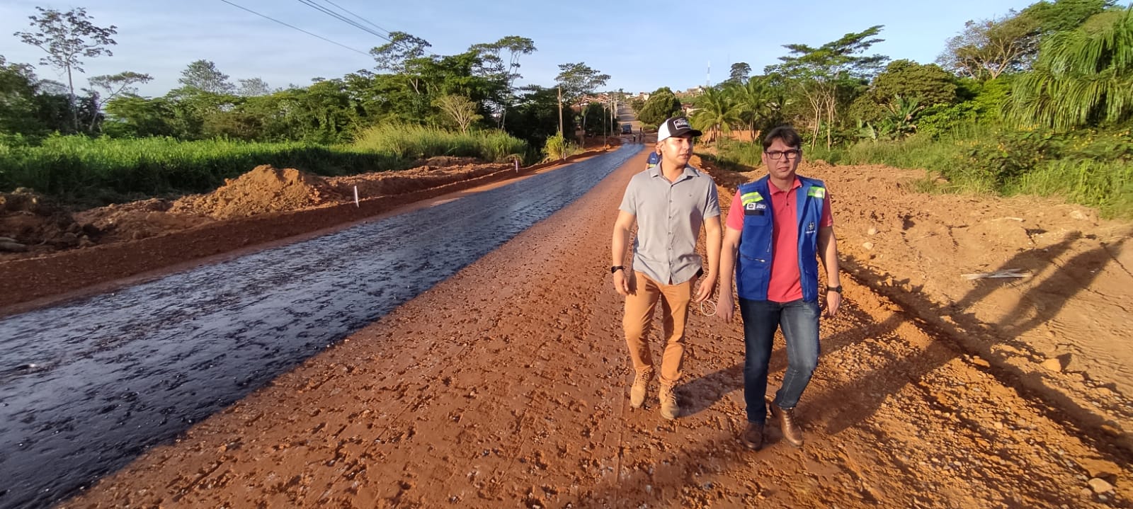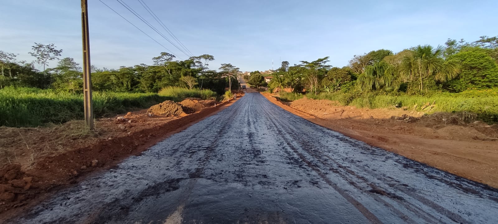 Nesta sexta-feira (29), foi realizada a imprimação do trecho que está pronto para receber a capa asfáltica, o que deve acontecer já na próxima segunda-feira (02).