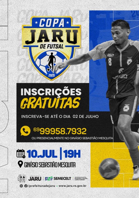 A Prefeitura de Jaru, por meio da Secretaria Municipal de Esportes, Cultura, Lazer e Turismo (Semecelt), continua recebendo inscrições para a edição 2025 da Copa Jaru de Futsal.