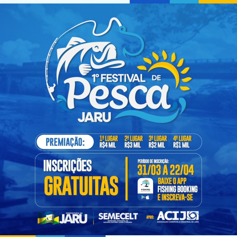 A Prefeitura de Jaru alerta que as inscrições do 1º Festival de Pesca Esportiva serão encerradas na próxima terça-feira, 22. Os competidores podem se inscrever gratuitamente por meio do aplicativo Fish Booking, que deve ser baixado via Apple Store ou Google Play.