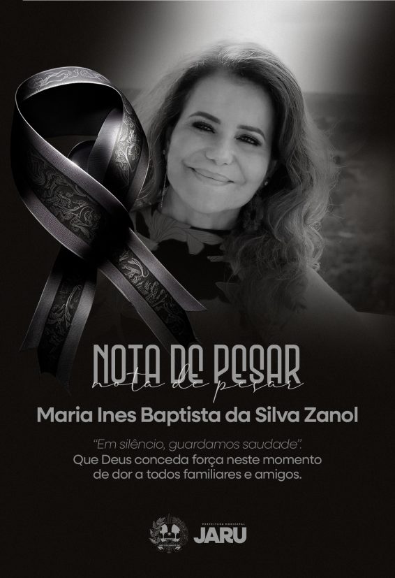 É com pesar que recebemos a notícia do falecimento da senhora Maria Inês Baptista da Silva, mãe do secretário municipal de Administração, Finanças e Orçamento de Jaru Igor Baptista Zanol.