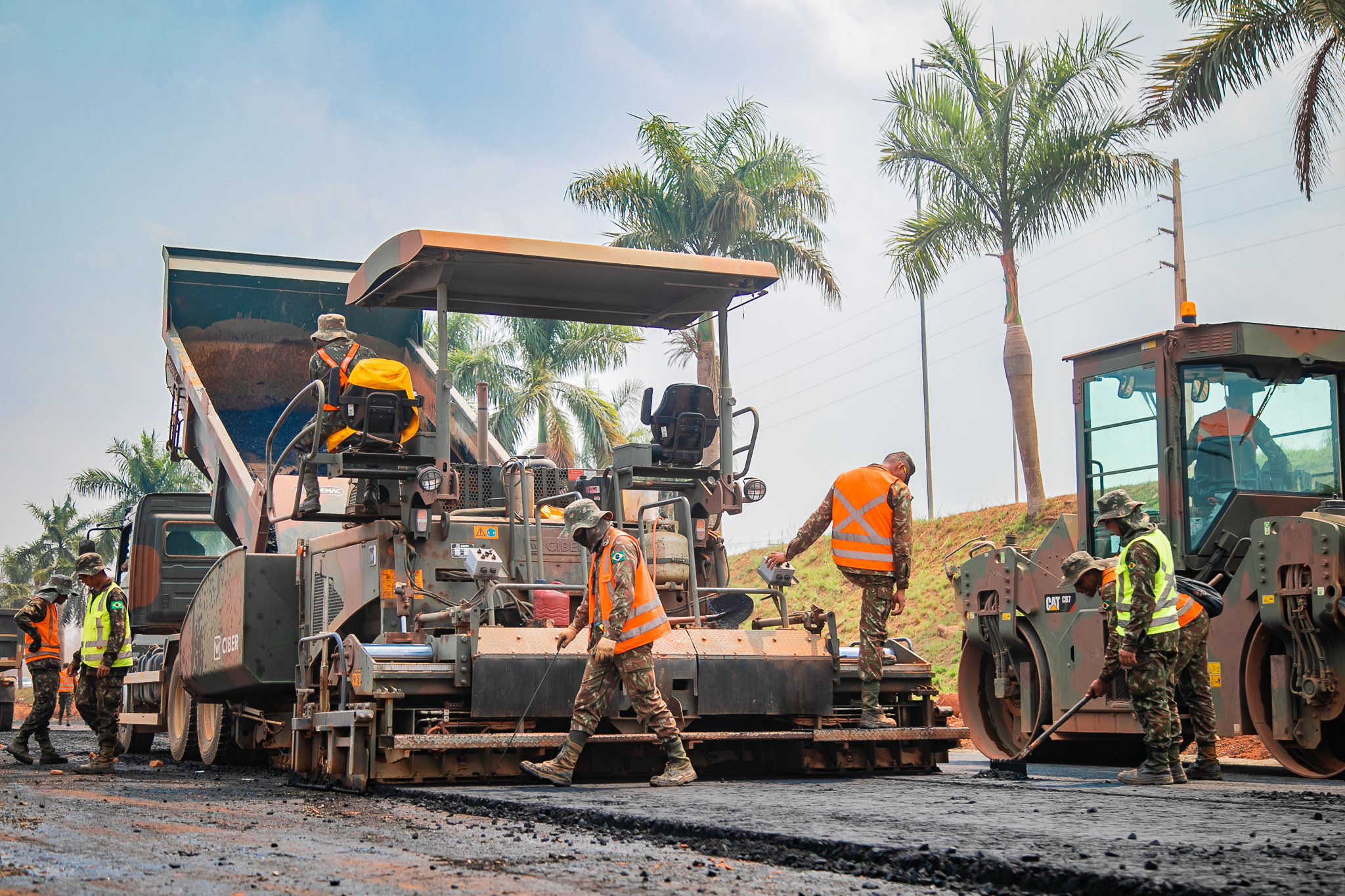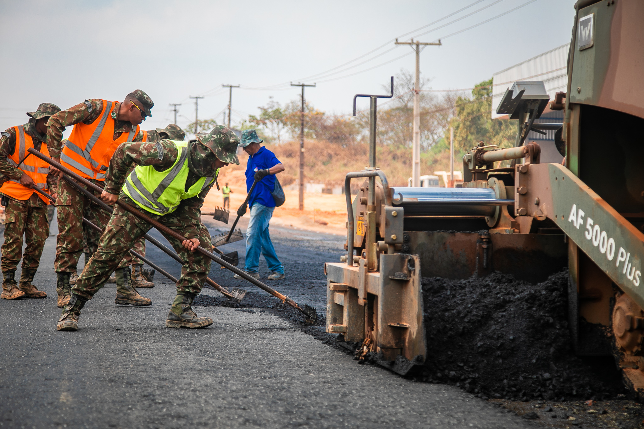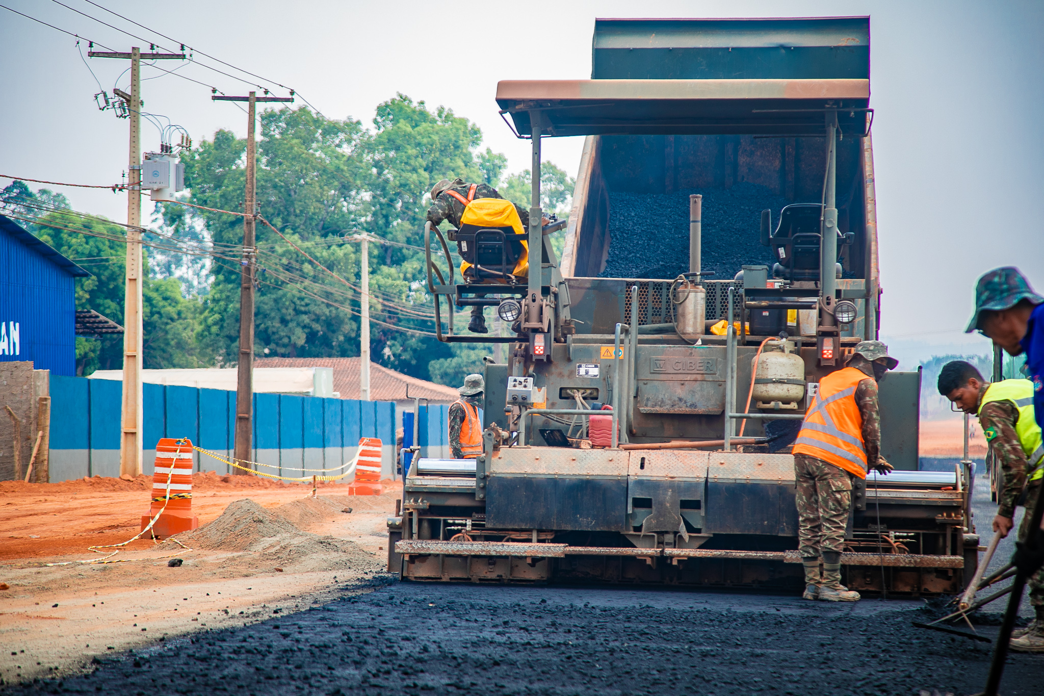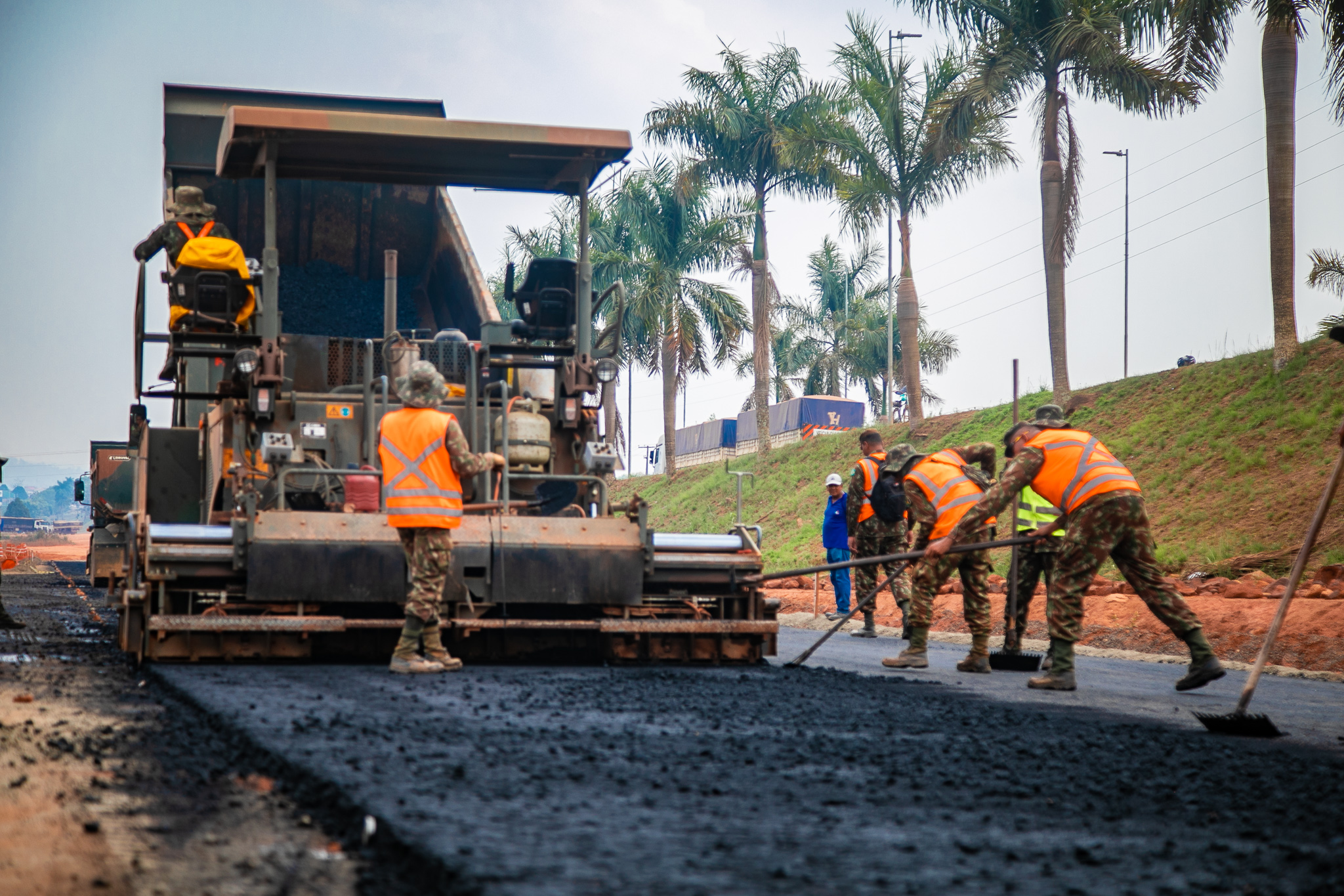 Nesta semana, o Exército Brasileiro, responsável pela execução da obra, iniciou mais uma etapa, que é a construção da pavimentação asfáltica, na pista que segue sentido a Ouro Preto.
