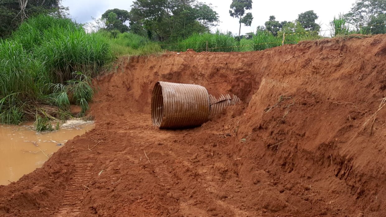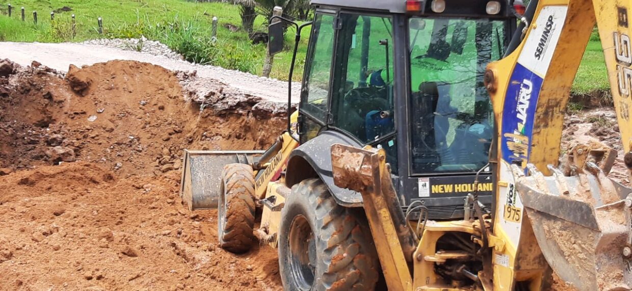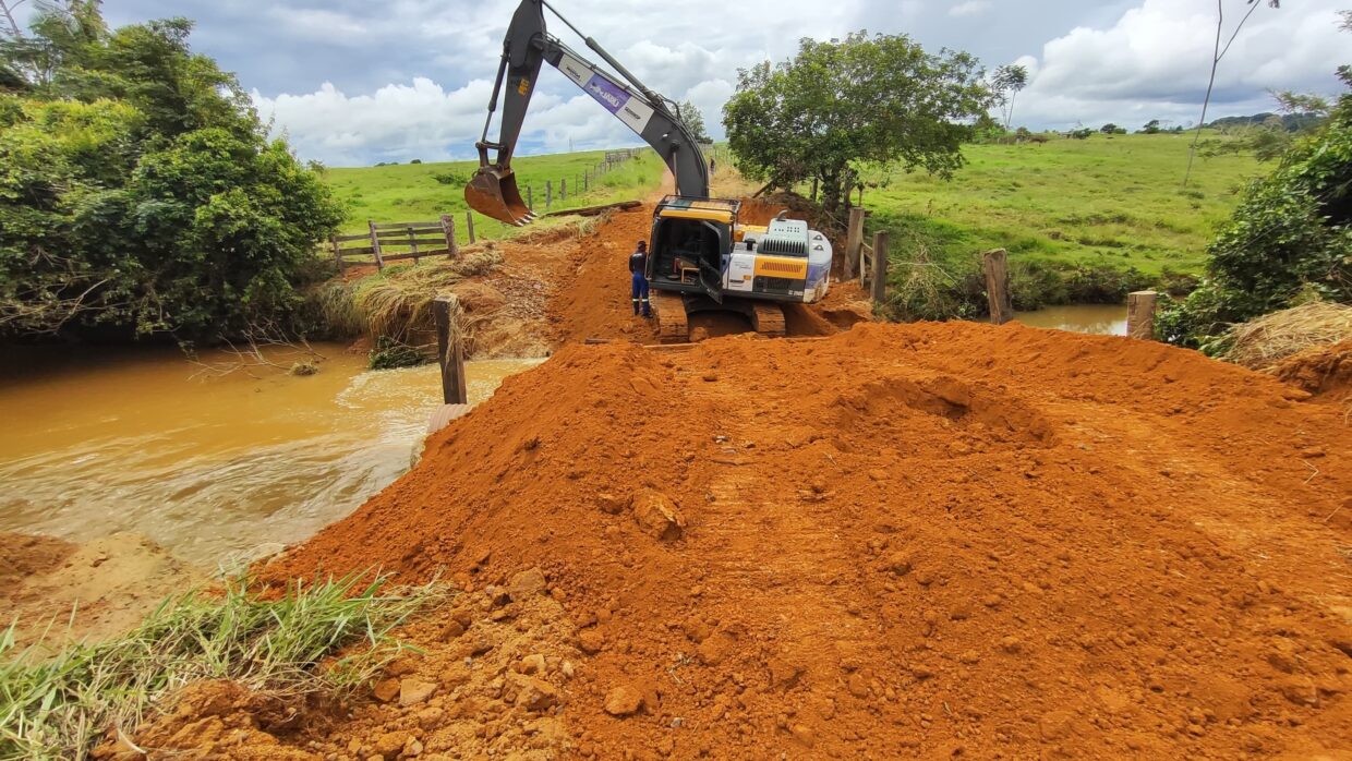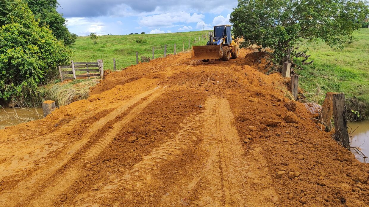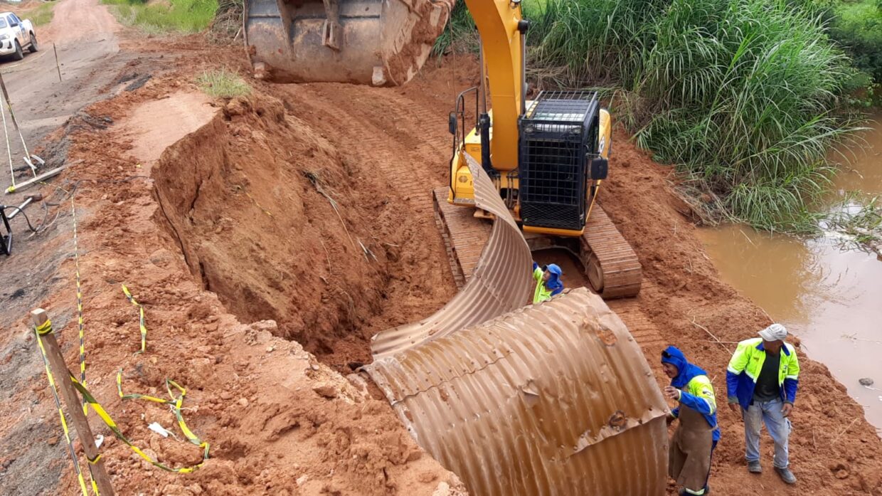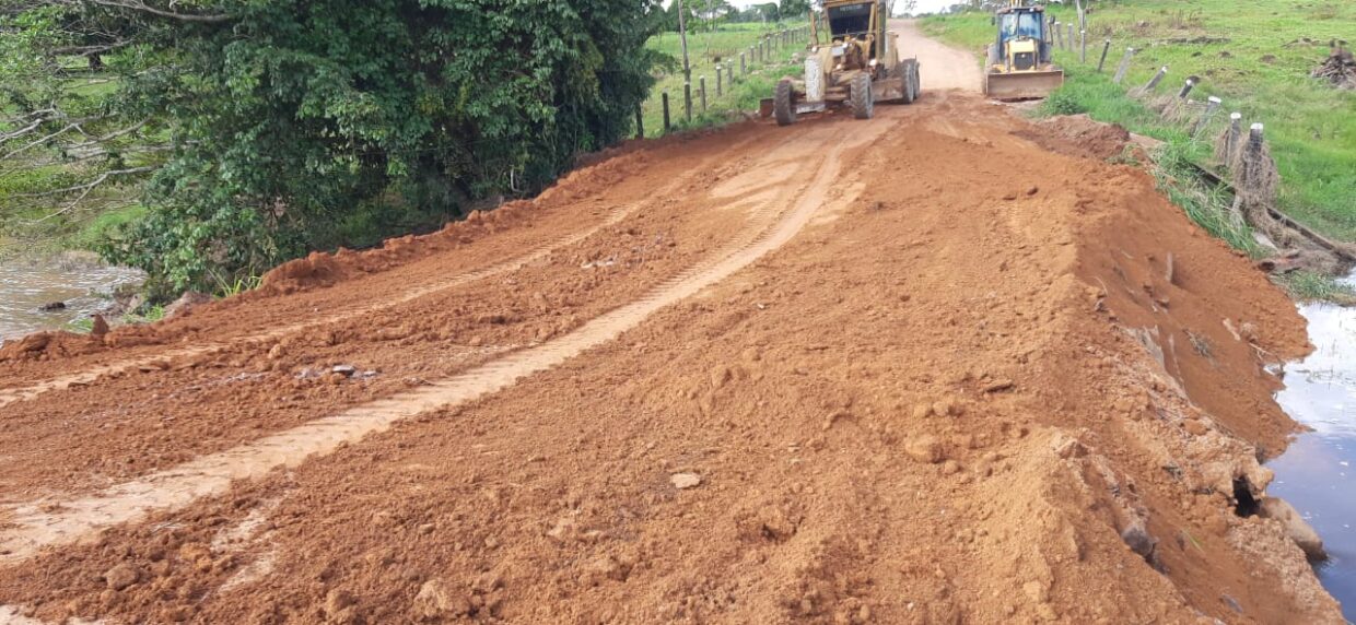 Os trabalhos incluem aterro, realocação dos tubos metálicos arrastados pela força das águas, além da recuperação de pontes e bueiros.
