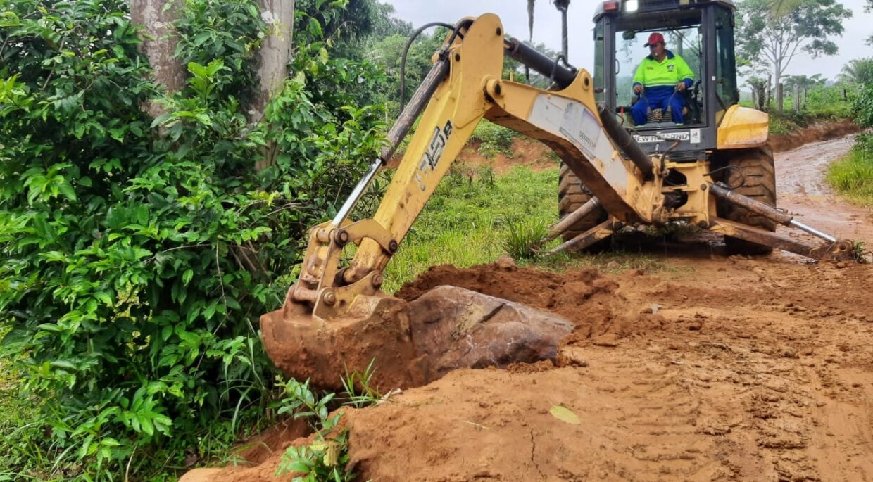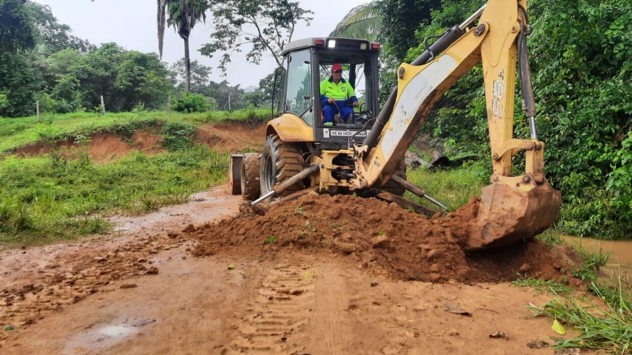 Nesta segunda-feira, 13, equipes se locomoveram até a altura do Km 05 da Linha 617, onde é realizada a troca de manilhamento de um bueiro, danificado em virtude das chuvas que caíram na região no último final de semana.