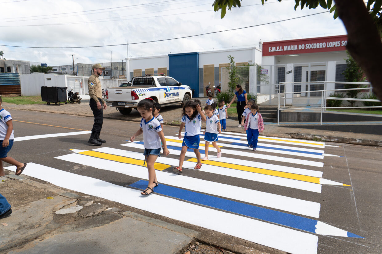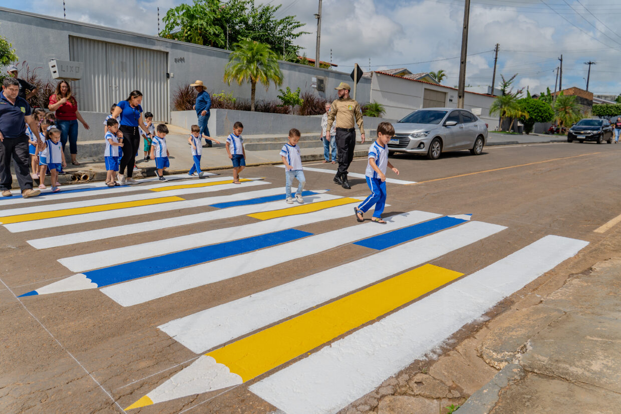 A Prefeitura de Jaru, por meio do Departamento Municipal de Trânsito – Demtran, iniciou na última quinta-feira, 24, a implantação de faixas de pedestre com formato de lápis de cor em frente às instituições de ensino municipais.