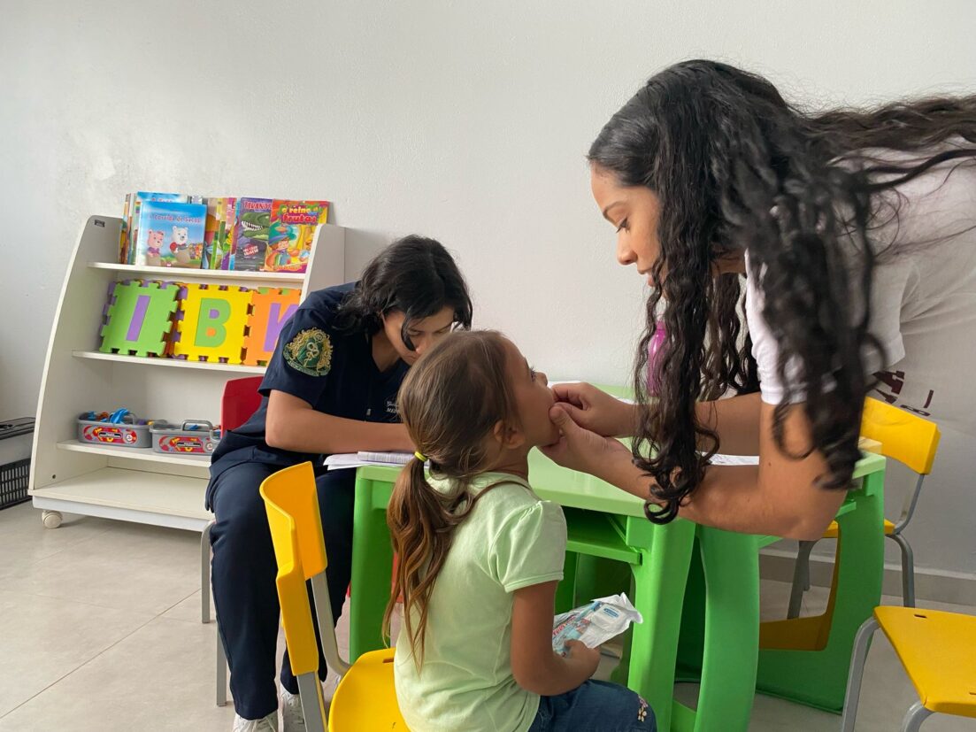 Entre os serviços oferecidos estão consultas de enfermagem, administração de Vitamina A, avaliação odontológica, teste de acuidade visual e atualização da caderneta de vacinação, com as vacinas conforme o calendário nacional de imunização. Além disso, são realizadas administração de medicação contra verminoses, avaliação do crescimento e desenvolvimento dos alunos e distribuição de kits de higiene bucal.