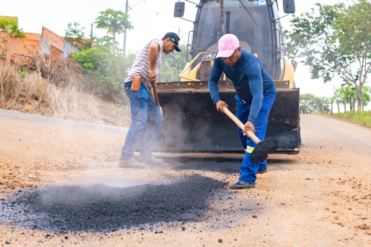 Prefeitura de Jaru realiza manutenção da pavimentação asfáltica na Linha 627 e no Residencial Jardim Europa