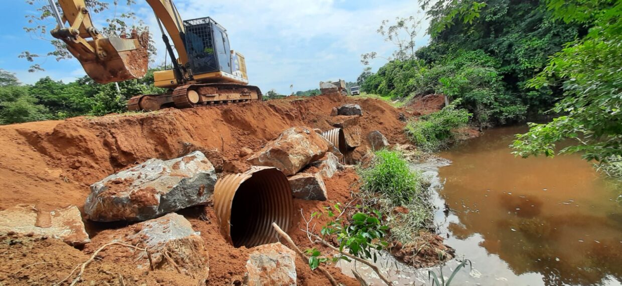 Prefeitura de Jaru realiza manutenção e aterro em bueiro na linha 612