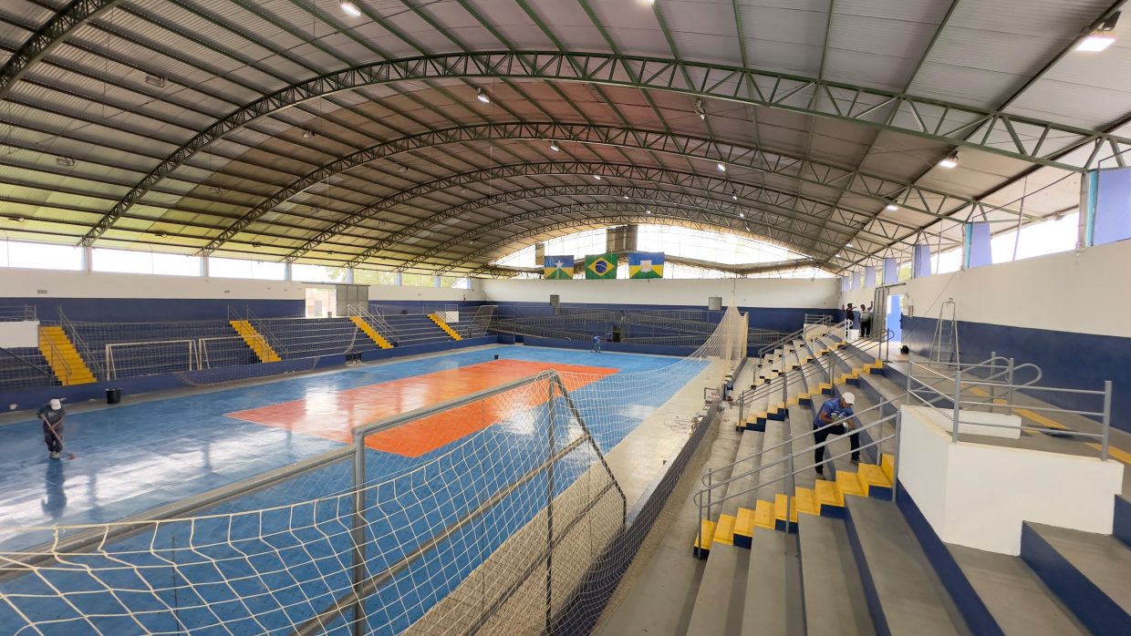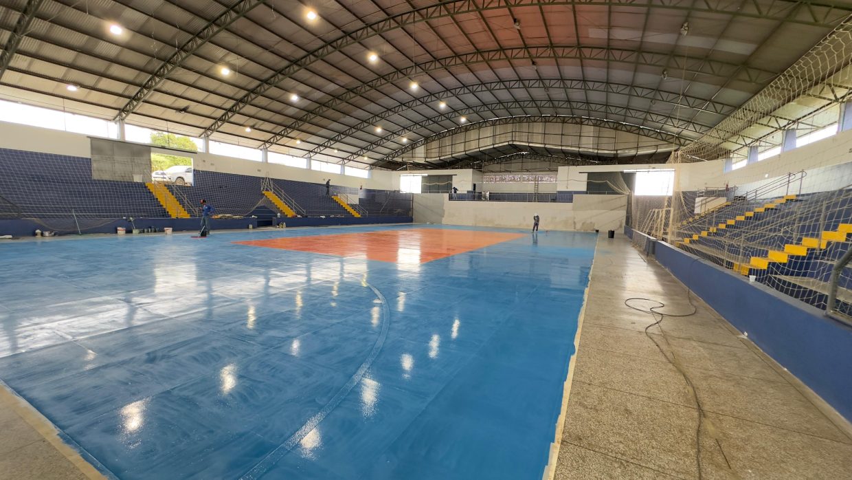 Entre as melhorias realizadas, está a reforma que contempla a pintura e demarcação da quadra, arquibancadas e escadas do ginásio poliesportivo Sebastião Mesquita.