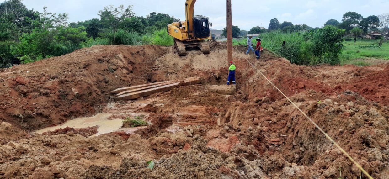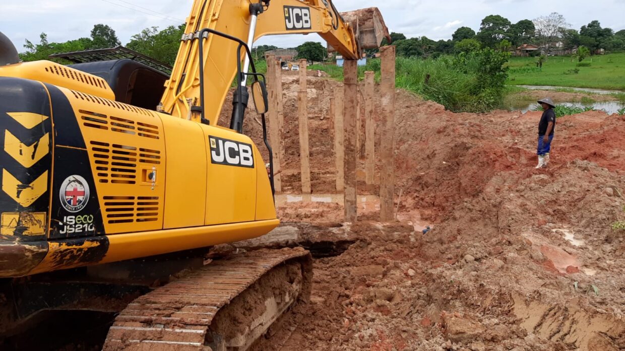 As equipes da Prefeitura de Jaru trabalham durante essa semana na reconstrução da ponte que passa sobre o Rio Tari, no distrito de Tarilândia.