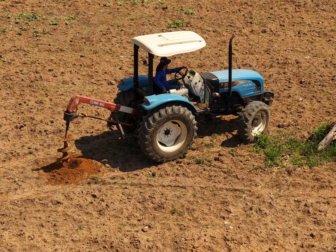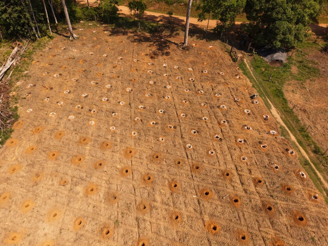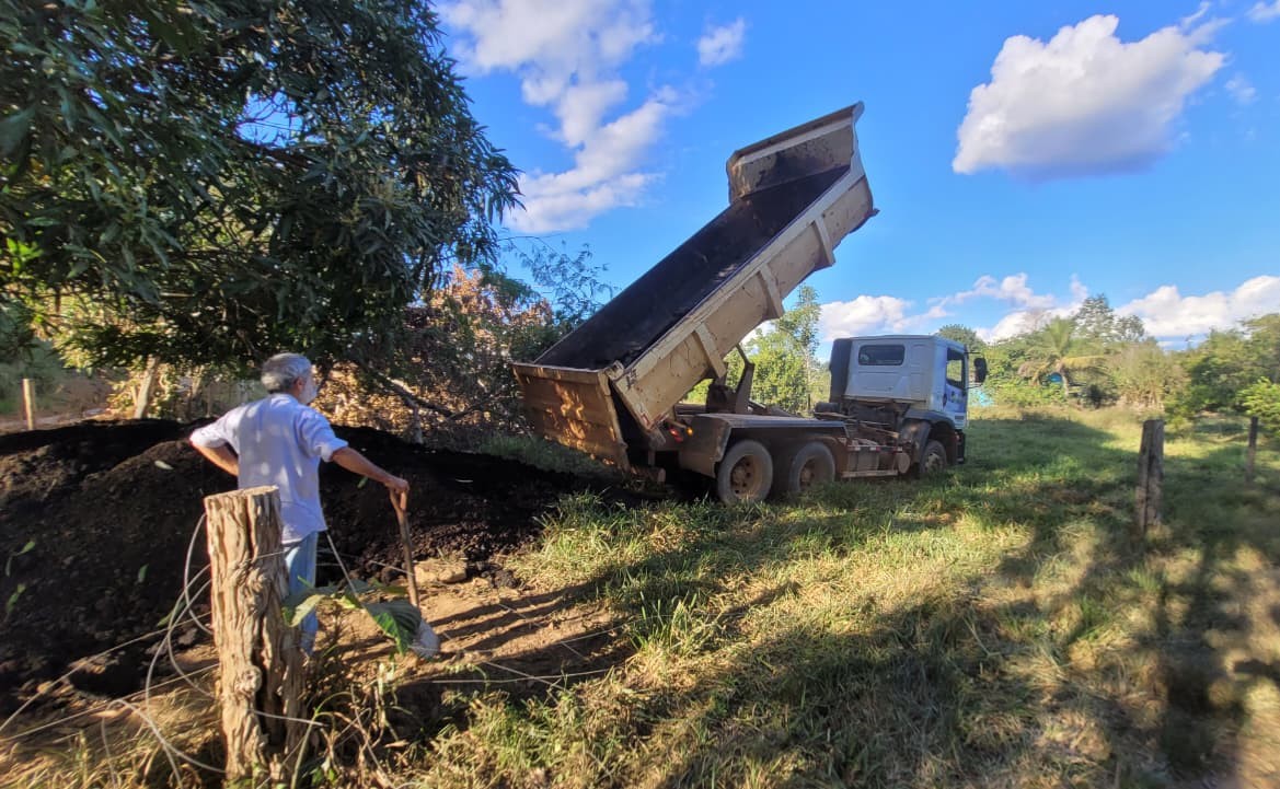 Na propriedade do senhor Ivanildo, foram escavadas 2.200 covas, além do transporte das mudas de cacau e de 10 toneladas de cama de frango, utilizada como adubo orgânico para melhorar a fertilidade do solo.